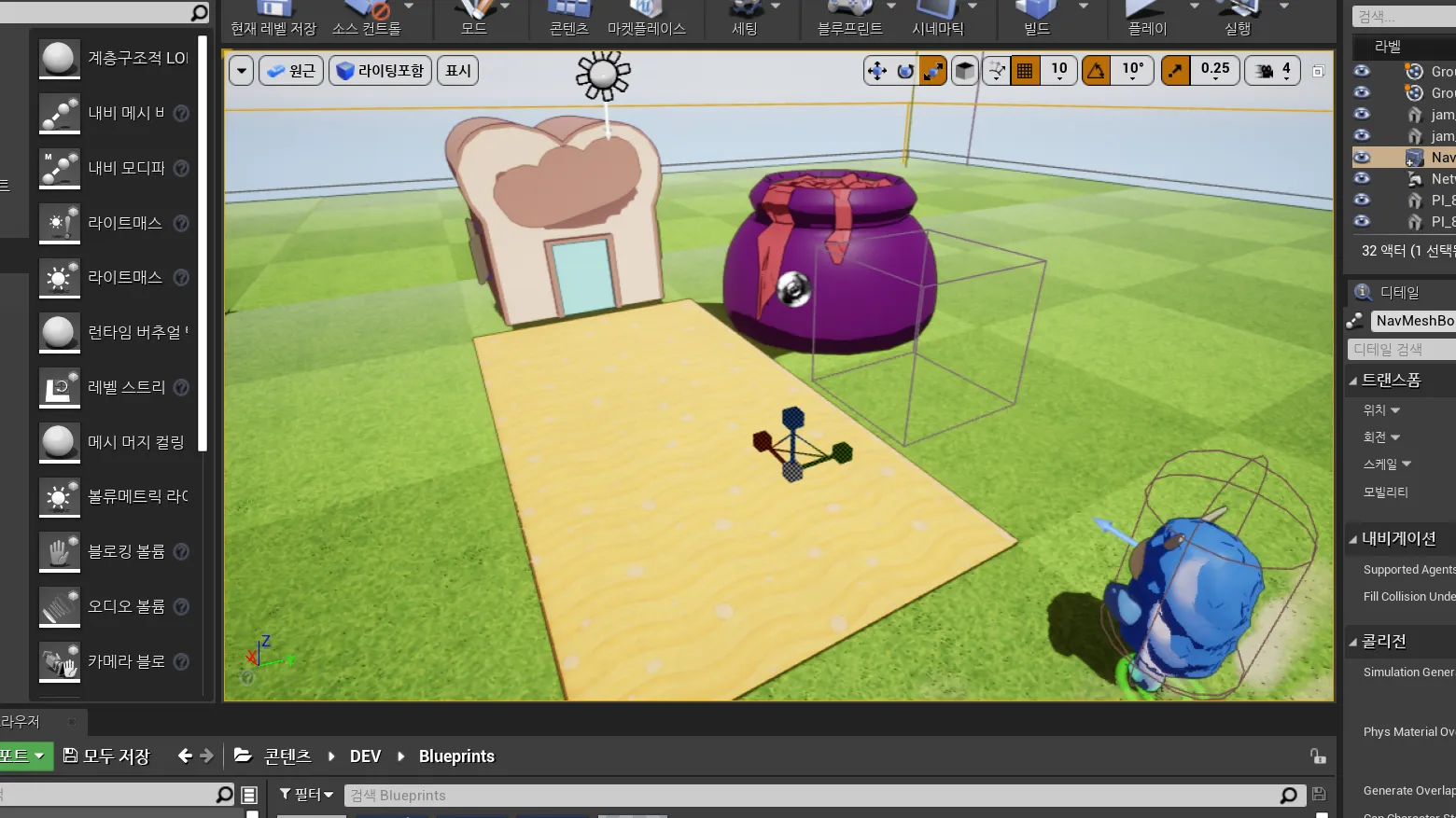 여러 크리쳐가 AI무브먼트를 사용하여 플레이어를 목적으로 달려오는 게임