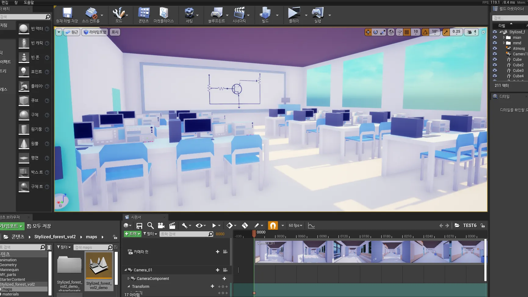 스케치업을 사용하여 제작한 건물과 게임엔진으로 만든 스타일라이징 렌더링이 돋보이는 영상
